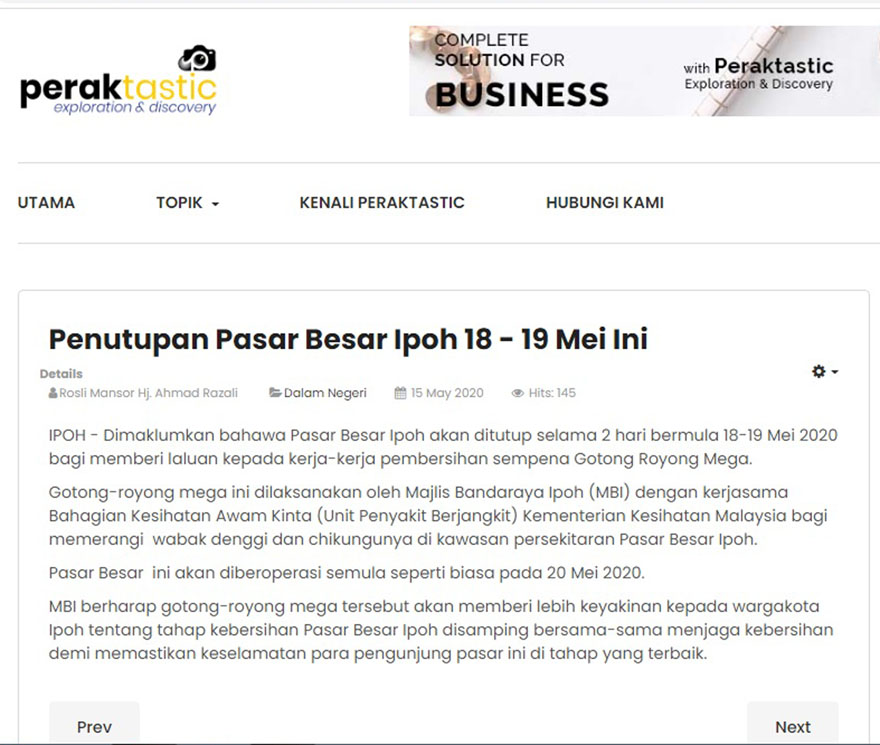 Read more: Pasar Besar Ipoh bebas chikungunya - susulan gotong royong mega MBI tahun lalu