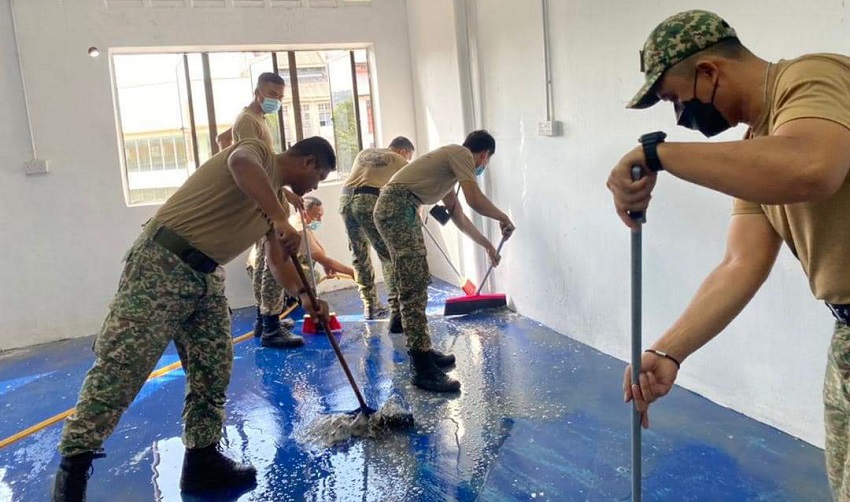 IPOH - Sepasukan anggota Briged Kedua Infantri Malaysia (2 Bgd) telah melaksanakan program jiwa murni membersihkan bangunan Persatuan Orang Cacat Penglihatan Negeri Perak, Cawangan Ipoh di Bangunan Persatuan Medan Kidd pada Khamis lalu.