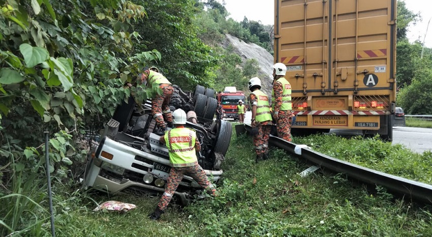 GERIK - Seorang pemandu lori maut apabila kenderaan dipandu terbabas lalu terbalik dalam kejadian di Kilometer 24 Bukit Jalan Raya Timur Barat dekat Gerik pagi tadi