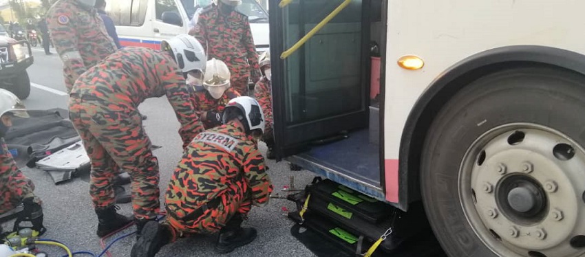 "Terdapat seorang mangsa tersepit di bawah tayar bas pada bahagian kiri dan disahkan maut di tempat kejadian oleh petugas kesihatan," ujar jurucakap tersebut.