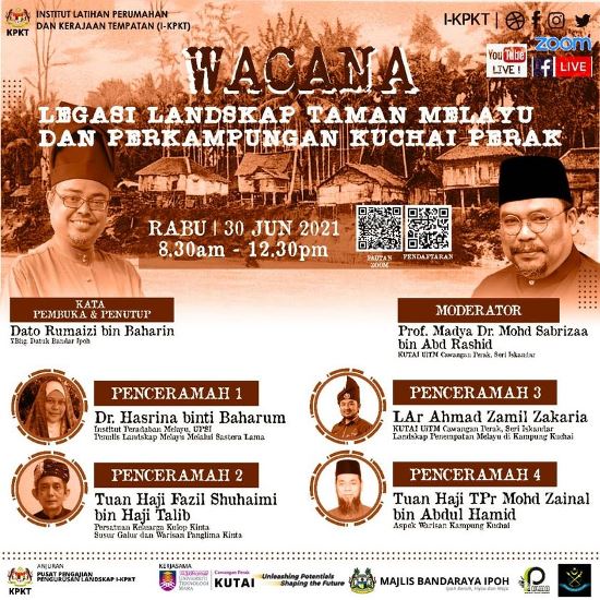 Wacana Legasi Landskap Taman Melayu dan Perkampungan Kuchai Perak dikelolakan oleh Institut Latihan Perumahan dan Kerajaan Tempatan (I-KPKT) dengan kerjasama Majlis Bandaraya Ipoh (MBI) dan Universiti Teknologi Mara (UiTM) kampus Perak.
