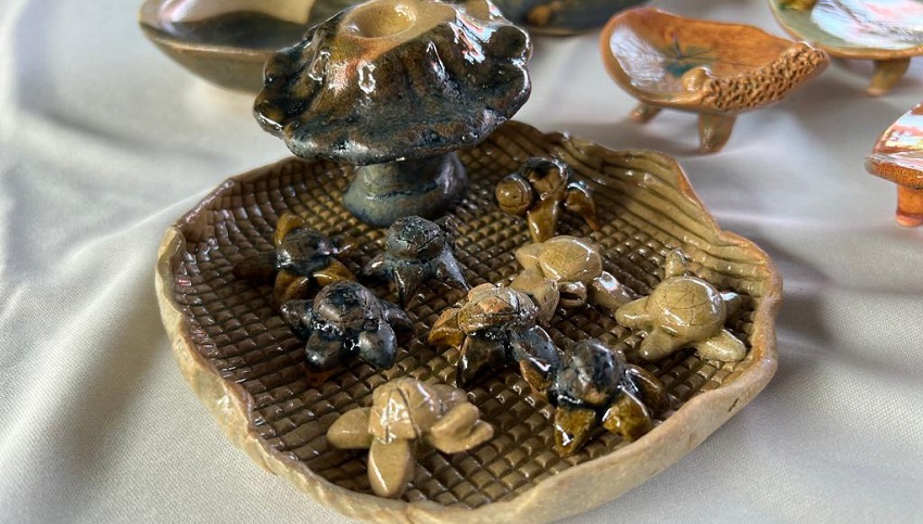 Katanya, kraftangan seramik yang dihasilkan seperti bekas letak sabun, fridge magnet, tempat meletak lilin dan paling menarik ialah hiasan tuntung.