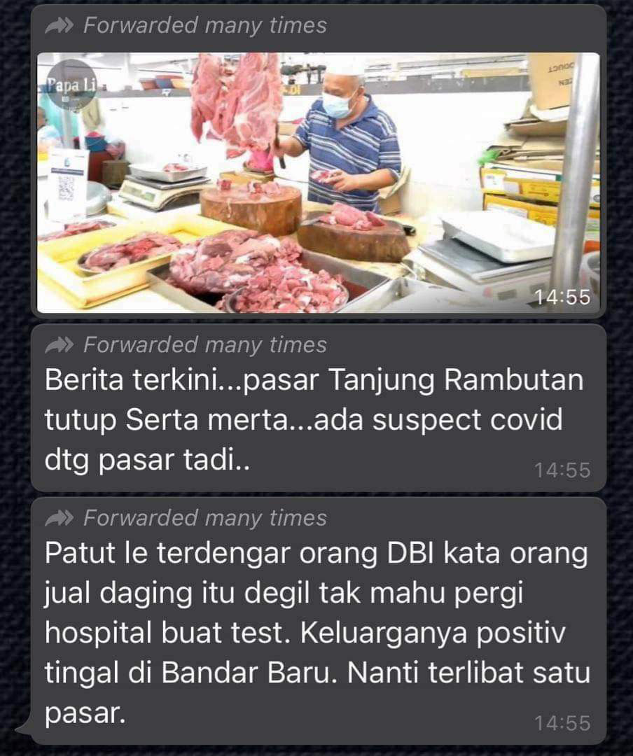Bagaimanapun, peniaga daging yang didakwa di dalam mesej palsu itu telah menjalani ujian calitan Covid-19 dan keputusan yang diperolehi adalah negatif.