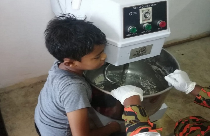 TAIPING - Seorang kanak-kanak tersepit tangan pada mesin pengukir tepung dalam kejadian di Markas Pas, Pintu Gerbang Sungai Petai dekat Bukit Gantang di sini.
