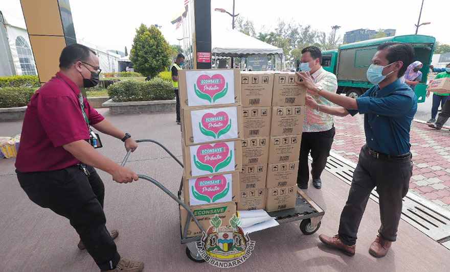 Sumbangan berupa 480 bungkusan makanan termasuk air mineral ditaja bersama oleh Econsave di bawah Program Econsave Prihatin.