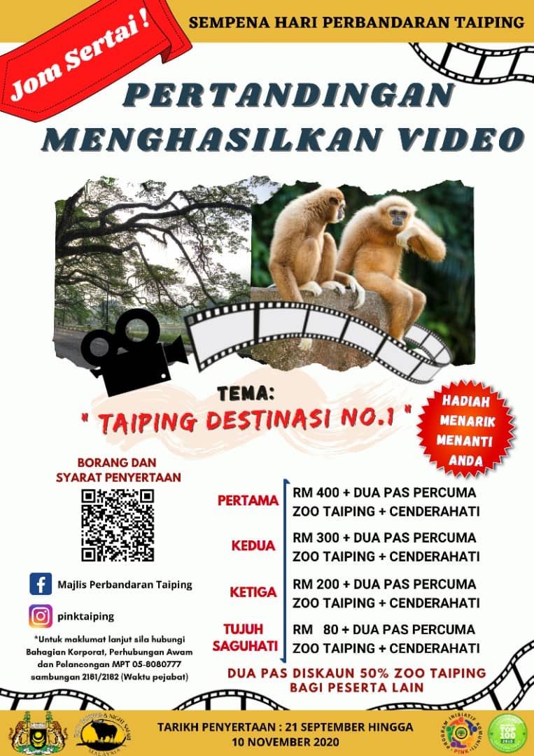 Taiping - Orang ramai dijemput menyertai pertandingan video pendek berdasarkan 15 lokasi pelancongan yang disenaraikan oleh Majis Pembadaran Taiping (MPT).