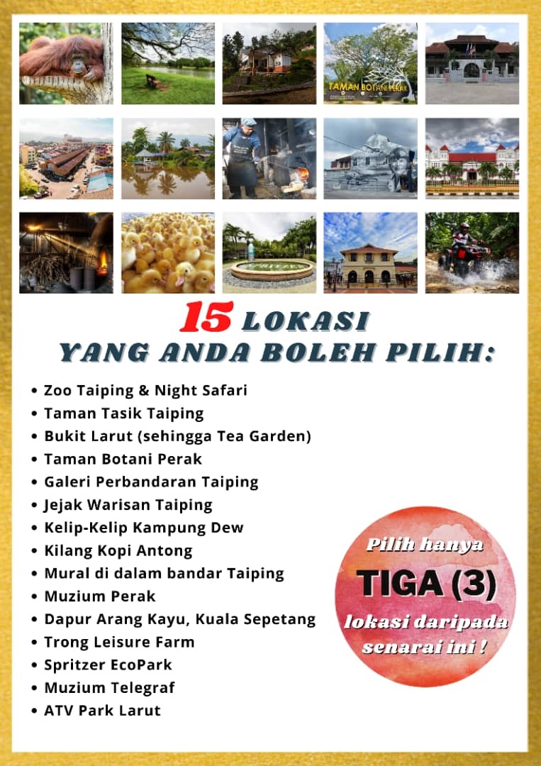 Peserta harus memilih tiga lokasi yang disenaraikan dan video yang terpilih akan dijadikan video promosi pelancongan Taiping yang akan dipautkan ke pelbagai medium media sosial MPT.