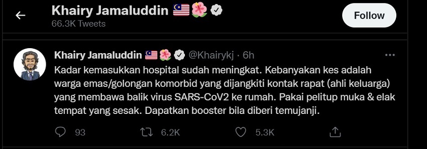 Read more: KJ ingatkan orang ramai kes jangkitan Covid-19 meningkat